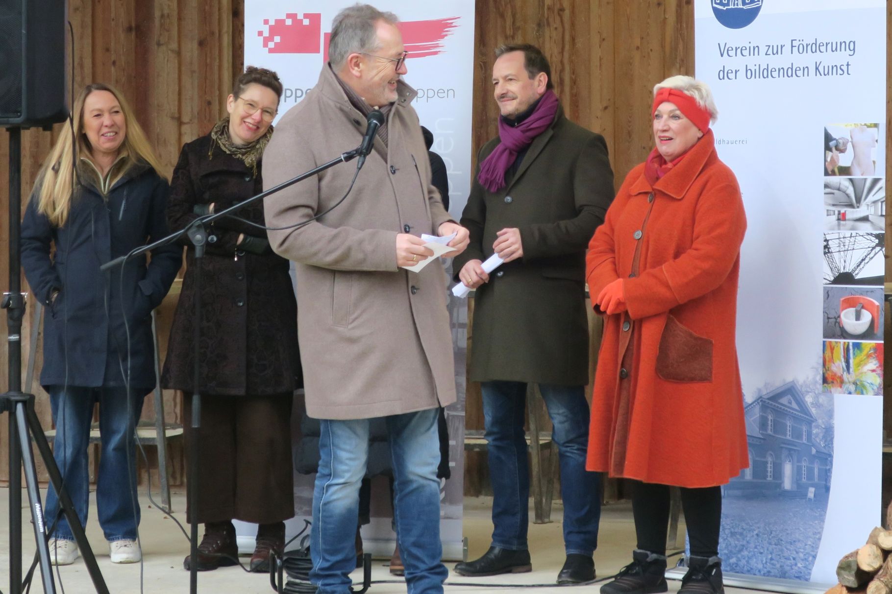 Begrüßt wurden die Gäste von der stellvertretenden Vorsitzenden Julia Wübben sowie Geschäftsführer Burkhard Sievers, die den Künstler vorstellten und sich über die Qualität und Vielseitigkeit der gezeigten Werke freuten. Rüdiger Barharn hat an der Hochschule der Künste, Berlin Malerei studiert und war Meisterschüler bei Prof. Bernd Koberling. Der Titel „Zwei Zeiten“ verweist auf eine rund 25-jährige Phase intensiver künstlerischer Auseinandersetzung, deren Spannbreite in der Präsentation eindrucksvoll sichtbar wird.